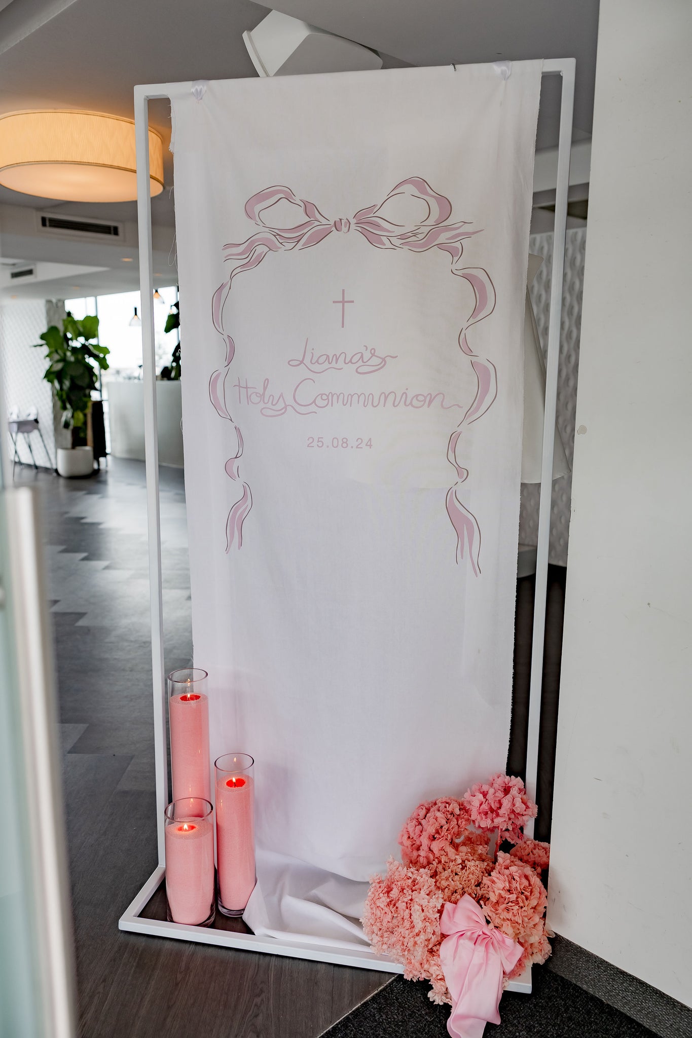 Fabric sign is to hire only. Comes with standard design and font choice. Additional charges apply for detailed designs.